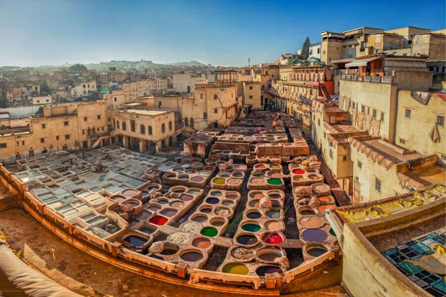 Discover Morocco’s cultural capital. Highlights include the Royal Palace, Jewish Quarter, Bab Boujloud, Bouanania Medersa, Nejjarine Museum, the ancient Quaraouiyine Mosque, and the world-famous Chouara Tannery. Overnight in Fez.