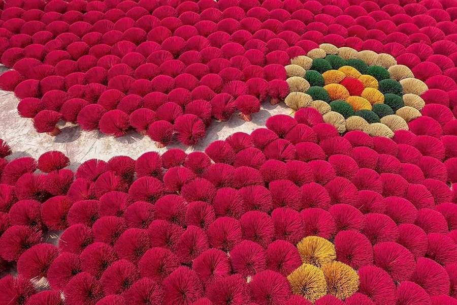 After B/F, depart to Bai Da Song Hong. Arrive early to enjoy the calm, golden light—perfect for photos among blooming flowers. Try the rainbow dry slide for fun and photo-worthy action shots. Wander through floral displays and whimsical mini-scenes, capturing dreamy photos. Visit Chimi Farm for berry-picking or relax with a picnic/settle in at Sixdoong café nearby (self-paid) After lunch we will take you to Quang Phu Cau Incense Village. You are free to walk around the village to take photos of incense bundles, incense making process. Drive back to Hanoi hotel. Overnight in Hanoi.